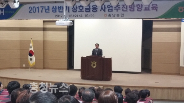 농협 충남지역본부(본부장 유찬형)은 12일 세종시 장군면 소재 세종교육원에서 충남지역 농·축협 신용상무와 지점장 등 300여명을 대상으로 '2017년 상반기 상호금융 사업추진방향 및 윤리경영 실천 결의대회'를 실시했다.