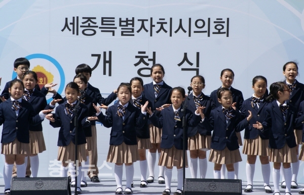 행사는 개청을 알리는 청소년 대합창 공연을 시작으로 유공자 시상, 의장 기념사와 내빈 축사, 세종시의회 발자취 영상 관람, 현판제막식 등에 이어 주요시설 관람 순으로 진행됐다.
