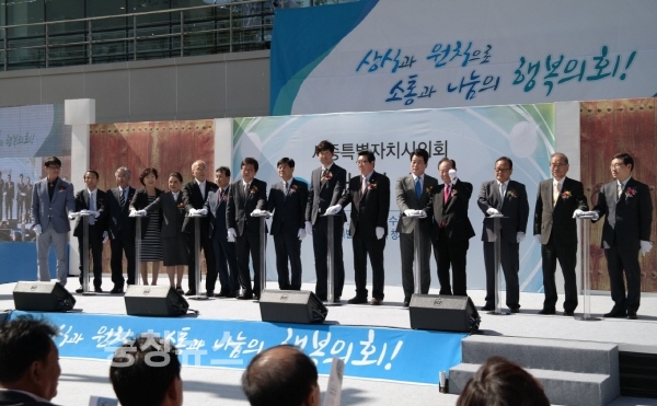 윤석우 충남도의회 의장은 "충청남도와 세종시가 상생하여 대한민국을 만들어 가는 중심의 축에서 같이 노력해 나가겠다"고 약속했다.