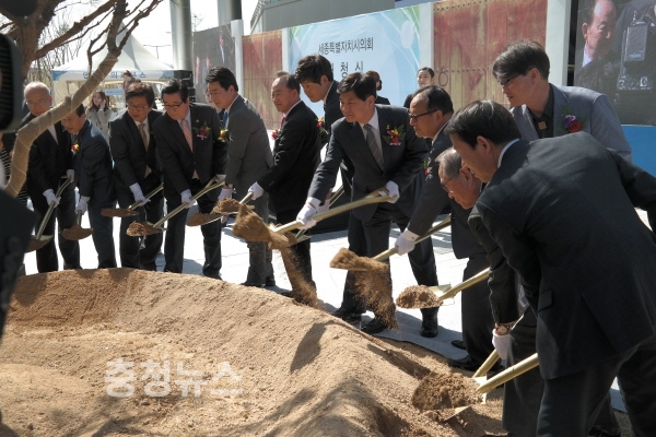 세종특별자치시의회(의장 고준일)가 4년 6개월간의 조치원 청사 시대를 마감하고 지난 2월 이전 후 12일 보람동 신청사 앞 광장에서 개청식을 가졌다.