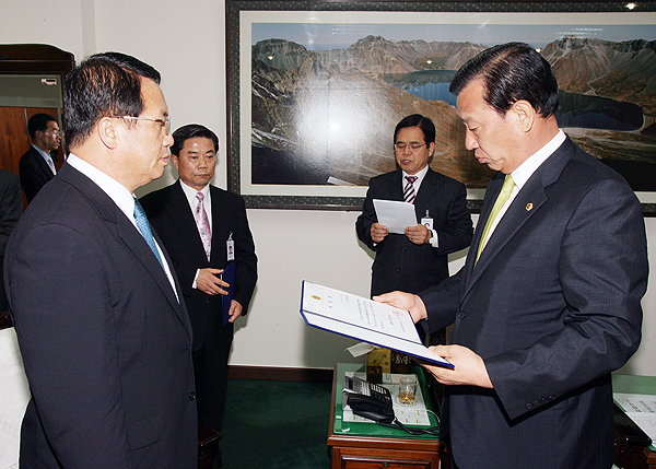 김문규 충청남도의회의장은 10일 오전, 의장실에서 2006회계연도 결산검사위원 위촉식을 가졌다.
