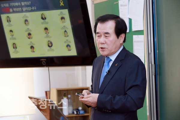 김지철 충남교육감은 세월호 참사 3주기를 맞아 14일 서산여자고등학교에서 1학년 4반 학생들과 함께 ‘안전은 인권이다’라는 주제로 안전 수업을 진행했다.