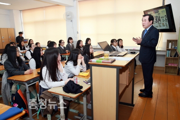 김지철 교육감이 안전수업하고 있다.