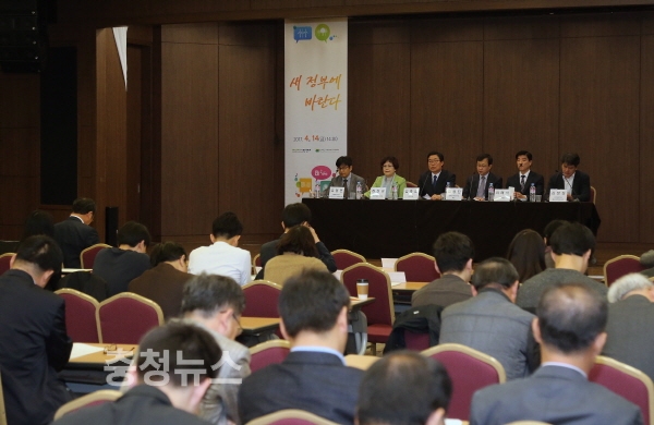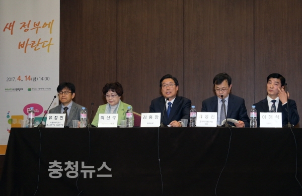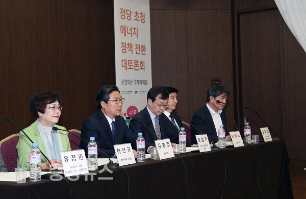 김홍장 당진시장이 14일 서울 명동 은행회관 국제회의장에서 열린 에너지정책 전환 토론회에 토론자로 참여해 석탄화력 발전 증설 중단과 신재생 에너지로의 전환 필요성을 강조했다.