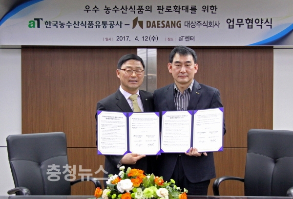 한국농수산식품유통공사(사장 여인홍)와 대상주식회사(대상, 대표이사 임정배)는 지난 12일 서울 양재동 aT센터에서 ‘우리 농수산식품의 판로 확대를 위한 업무협약’을 체결했다고 밝혔다.