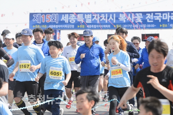 16일 세종시민체육관광장에서 제15회 세종특별자치시 복사꽃 전국 마라톤대회’가 개최됐다. 이번 대회에는 1800여명의 건각들이 참가해 봄꽃 속에서 실력을 겨뤘다. 이춘희 세종시장 복사꽃 전국 마라톤대회사 / 충청뉴스 최형순 기자 이춘희 시장과 함께 출발하는 참가자들. 저작권자 © 충청뉴스 무단전재 및 재배포 금지 최형순 기자 다른기사 보기 기사가 마음에 드셨나요? 충청뉴스 좋은 기사 후원하기 1,000원 3,000원 5,000원 10,000원 30,000원 50,000원 직접입력 비회원 약관동의하기 ※ 소중한 후원금은 더 좋은 기사를 만드는데 쓰겠습니다.