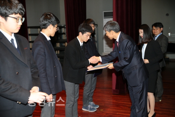 재단법인 아산시미래장학회(이사장 홍승욱)는 지난 14일 아산시청 시민홀에서 우수인재 양성을 통한 교육경쟁력 강화를 도모하기 위해 2017년도 장학생을 선발해 장학증서 수여식을 가졌다.