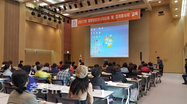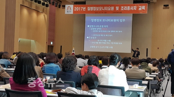 충남 공주시(시장 오시덕)가 지난14일 고마 컨벤션홀에서 질병정보모니터요원과 조리종사자 등 260여명을 대상으로 감염병 예방관리 등에 관한 교육을 실시했다.