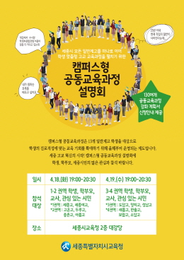 세종특별자치시교육청(교육감 최교진)이 오는 18일과 19일 양일에 걸쳐 캠퍼스형 공동교육과정 설명회를 개최한다고 17일 밝혔다.