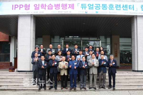한남대(총장 이덕훈)는 18일 교내 계의돈기념관에서 고용노동부와 한국산업인력공단 관계자, 교수 및 학생 등 70여명이 참석한 가운데 ‘IPP형 일학습병행제 듀얼공동훈련센터’ 현판식을 가졌다.