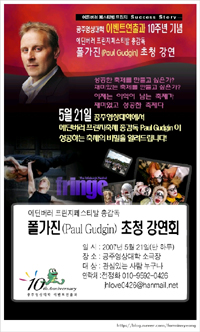 에딘버러 프린지페스티발 총감독 폴가진 초청 강연회에 초대합니다.