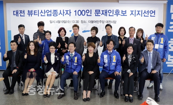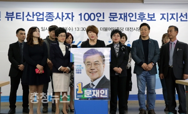 대전지역 뷰티산업종사자들이 문재인 더불어민주당 대선 후보에 대한 지지를 선언했다.