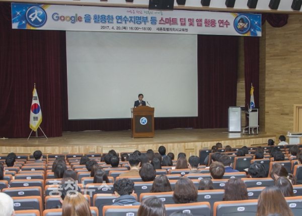 세종시교육청은 20일 본청 대강당에서 교직원 200여명을 대상으로 ‘google을 활용한 연수지명부 등 스마트 팁과 앱 활용 연수’를 실시했다.