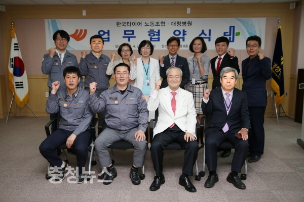 업무협약에는 오수정 병원장, 서미경 간호부장을 비롯한 대청병원 관계자와 박병국 한국타이어 노동조합 위원장, 문태길 부위원장, 조성호 부위원장, 최성기 사무국장 등 20여명이 참석했다.