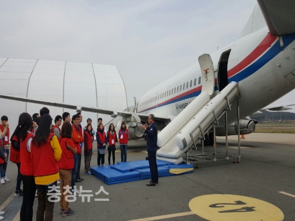 이번 연수는 한서대학교 재난안전교육원(충남 태안 소재)에서 항공기와 선박 탈출체험, 건물과 버스탈출 체험, 심폐소생술과 제세동기 활용법, 화재 와 지진 대응요령 등 실질적인 재난으로부터 학생들의 생명과 안전을 보호 할 수 있는 프로그램으로 진행됐다.