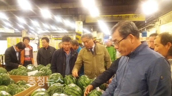 밤 10시에 가락동 시장에 도착하여 청과상회 관계자들을 직접 만난 이 군수는 전국 농산물 유통가격 상황과 향후 전망에 대해 생생한 현장의 목소리를 들었다.