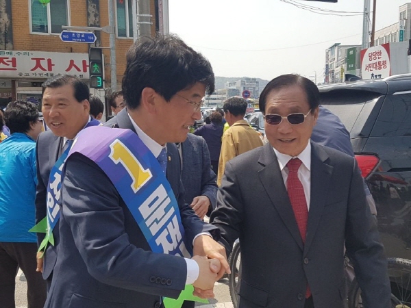 박완주 더불어민주당 충남도당위원장을 필두로 한 ‘허리케인 유세단’이 21일 홍성군을 방문해 기호1번 문재인 후보에 대한 지지를 호소했다.