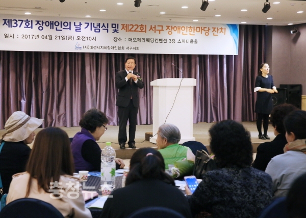 대전 서구(구청장 장종태)는 제37회 장애인의 날을 맞이해 지난 21일, 더오페라웨딩컨벤션에서 장애인, 가족, 자원봉사자 등 650여 명이 참여한 가운데 ‘제22회 ‘서구 장애인 한마당 잔치’를 개최했다고 밝혔다.