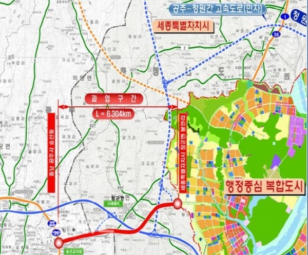 행복도시∼공주 1구간 도로 확장은 행복청이 총사업비 1136억 원을 투입하여 추진하는 국도36호선 확장 공사로서, 2013년 5월 착공하여 올 해 10월까지 6.3km구간을 기존 4차선에서 6차선으로 확장하고, 행복도시와 공주시의 접근성 및 대중교통 서비스 강화를 위해 단계적으로 광역도로망을 확충할 계획이다.