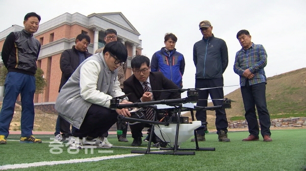 충남 당진시가 올해 충남도내 처음으로 선보인 드론(무인비행장치) 교육에 지역 농업인들의 반응이 뜨겁다.
