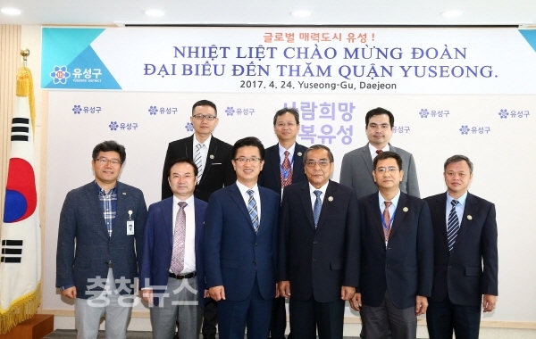 대전 유성구(구청장 허태정)는 24일 베트남 동나이성 쩐 반 뜨 당비서를 비롯해 공위고위공무원 12명이 유성구와의 교류방안 협의를 위해 방문했다고 밝혔다.