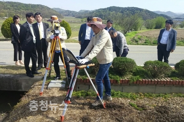 그동안 한국국토정보공사 측량전담팀은 지적측량 기준점인 보조 삼각점 및 도근점에 대해 현지 토지 경계선과의 부합 여부 확인을 위한 기초측량을 완료했고 측판점으로 사용하기 위한 보점 90점도 설치했으며 임야를 제외한 실험사업대상 800여 필지 중 168필지에 대해 세부측량을 완료했다.