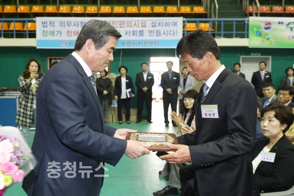 기념식에서는 모범장애인 및 장애인복지유공자로 농아인협회 황인식 씨 등 7명이 보령시장상, 시 보건소 송희서 방문보건팀장과 대천신협 민병두 조합장이 지체장애인협회 충남협회장상, 충청남도의회 백낙구 도의원이 충남신체복지회장상, 시청 교육체육과 김경태 주무관과 장애인후원회 김양미 씨가 지체장애인협회 보령시지회장상을 받았다.