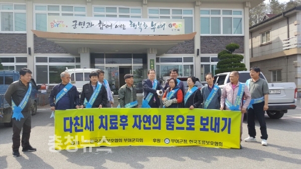 충남 부여군은 지난 21일 규암면 행정복지센터 앞에서 한국조류보호협회부여군지회(회장 박소웅) 회원 및 정용석 규암면장 등 공무원 20여명이 참석한 가운데 ‘천연기념물 솔부엉이 방사 행사’를 개최했다.
