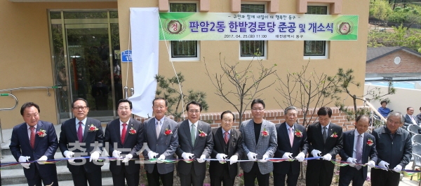 대전 동구(구청장 한현택)는 관내 어르신들의 따뜻한 행복쉼터인 판암2동 한밭경로당 신축에 따른 준공‧개소식을 25일 가졌다고 밝혔다.
