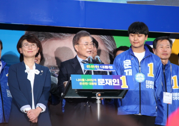문 후보는 “경선에서 경쟁했던 후보의 가족들까지 힘을 보태주고 있다. 우리 정치사에 이렇게 감동적인 일이 있었나?”라며 “이것이 바로 민주주의자들의 정당, 민주당의 저력이다. 그래서 이번엔 저 문재인이 질래야 질 수가 없다. 5월9일 꼭 정권교체를 이루고 안희정의 꿈, 이재명의 꿈을 함께 완성하겠다”고 전했다.