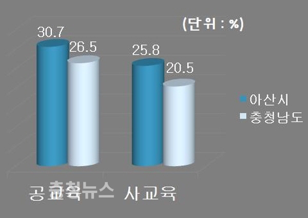 아산시 교육환경 만족도...공교육 30.7%, 사교육 25.8%