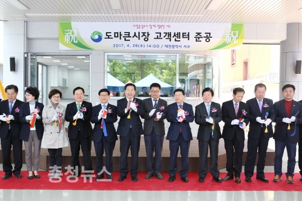 대전 서구(구청장 장종태)는 26일 장종태 서구청장을 비롯한 150여 명의 주민이 참석한 가운데 ‘도마큰시장 고객센터 준공식’을 했다고 밝혔다.