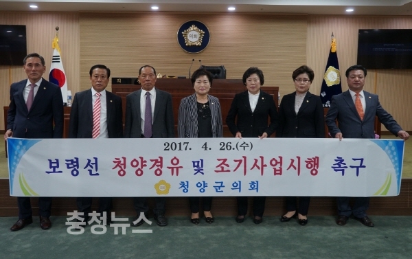 청양군의회(의장 이기성)는 26일 제1차 본회의장에서 보령선 청양경유 및 조기 사업시행을 위한 건의문을 발표하고 이를 강력히 촉구했다.