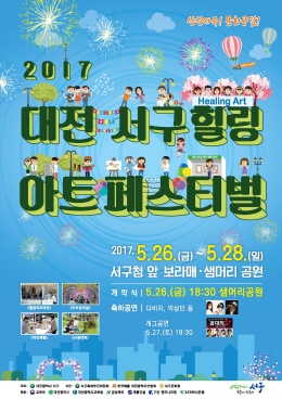 대전 서구(구청장 장종태)는 내달 26일부터 28일까지 보라매공원과 샘머리공원 일원에서 ‘2017 서구 힐링 아트 페스티벌’을 개최한다고 27일 밝혔다.