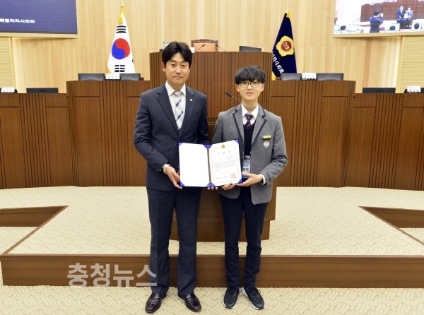 고준일 세종시의회 의장과 손재혁 학생대표 / 충청뉴스 최형순 기자