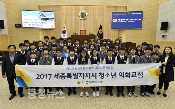 세종특별자치시의회(의장 고준일)는 27일 3층 본회의장에서 종촌중학교 학생 40명을 대상으로 ‘2017년도 제1기 청소년 의회교실’을 개최했다.