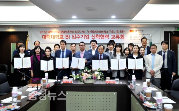 대덕대(총장 김상인)와 창업보육센터 입주기업은 27일 상호 우호적이고 긴밀한 협력 관계 형성 및 대학의 인프라를 활용한 성공창업 지원을 위한 '대덕대학교 창업보육센터 입주기업 산학협력 교류회'를 개최했다.