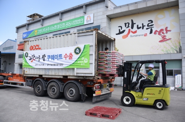 공주시(시장 오시덕)는 고맛나루 쌀 18.5t(20kg, 925포)을 중동 쿠웨이트 케더링 업체인 미네르바를 통해 쿠웨이트 건설 현장에 수출하기로 했다고 28일 밝혔다.