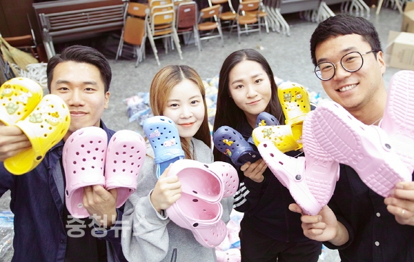 충남대학교 해외봉사단은 지난 겨울방학 동안 2주간(1월 10일~24일) 캄보디아 씨엠립 지역에서 봉사활동을 펼치며 인연을 맺은 오지마을인 폼스와이르의 원주민 어린이들을 위해 신발 선물을 준비했다. 어린이 신발과 성인 신발 등을 포함해 200여 켤레가 캄보디아 현지로 발송될 예정이다.