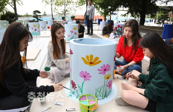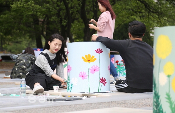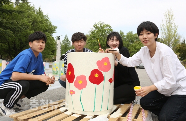 교내 캠퍼스 곳곳에 놓여 있던 낡은 쓰레기통 60개를 한 대 모아 페인트통과 붓을 들고 쓰레기통에 주변 환경들과 어울리는 다양한 꽃을 그리며 환경 개선에 앞장선 것이다.