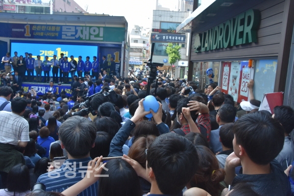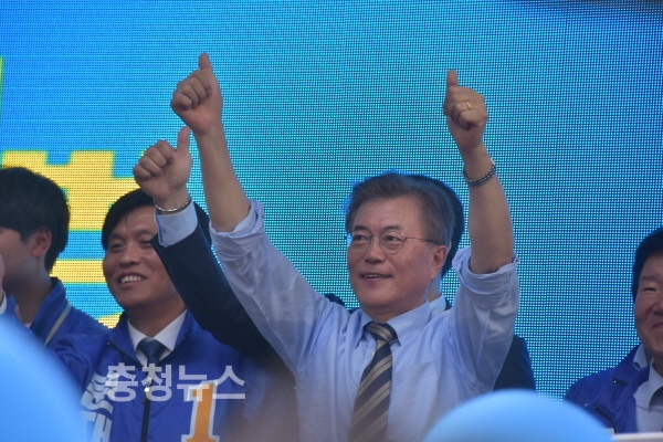 문 후보는 "저 문재인이 지금 우리 대전에서만 1등이 아니라 전국 모든 지역에서 1등이다. 호남, 충청, 서울, 수도권, 강원, 제주 전부 문재인 1등하는 거 보고 계시나? 50대도 문재인이 1등이다"라며 자신감을 보였다.