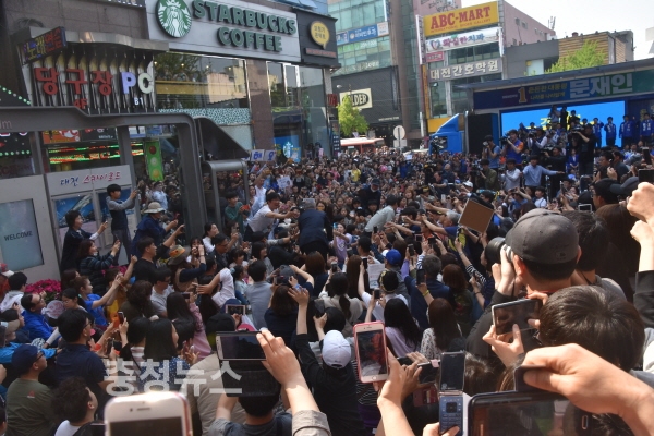한편 이날 으능정이 유세에는 수많은 인파가 몰리며 거리가 마비되는 진풍경이 연출됐다.