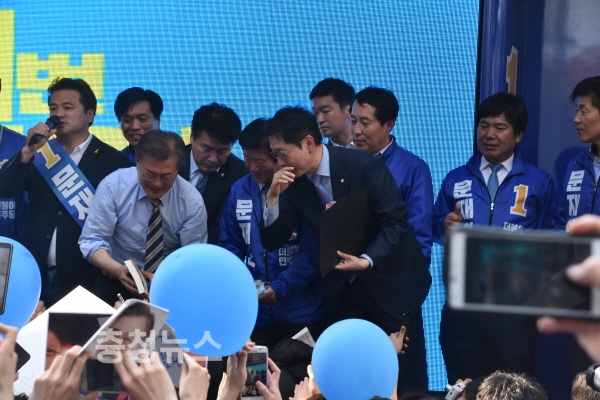 특히 "안희정 지사와 함께 충남 발전시키겠다. 또 권선택 시장과 함께 대전도 발전시키겠다. 우리 대전시민들이 힘을 모아주시면 우리가 반드시 이뤄낼 수 있는 꿈이다"라고 목소리를 높였다.