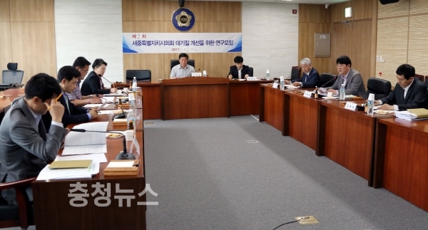 세종특별자치시의회(의장 고준일) “대기질 개선을 위한 연구모임(대표 김정봉 의원)”은 사회의 미세먼지 감축 노력에 발맞추어 세종시 지역적 여건과 특성에 적합한 대기환경 기준을 설정하고 쾌적한 대기환경 조성을 위한 실질적인 저감 대책 마련에 최선을 다하고 있다.