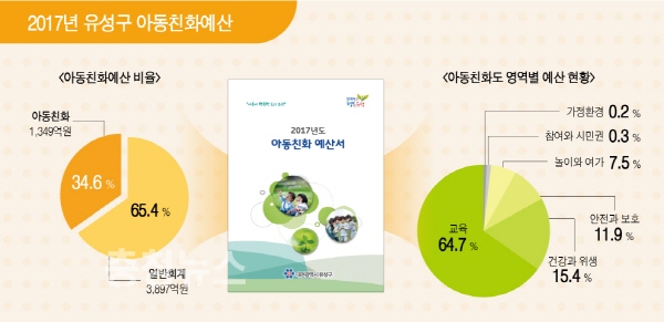 대전 유성구(구청장 허태정)는 아동권리 증진을 위한 예산분석과 체계적 관리를 위하여, 2017년도 본예산에서 아동과 관련된 예산을 발췌․분석해 ‘2017년도 아동친화예산서’를 작성했다고 1일 밝혔다.