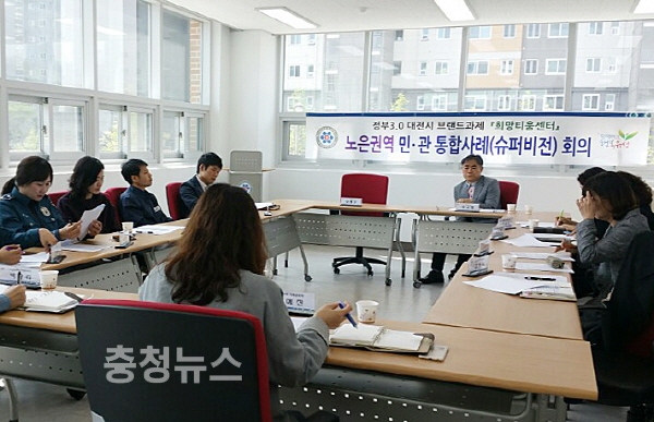 관내 취약계층 발굴과 지원 방안 마련을 위한 회의를 하고 있다.