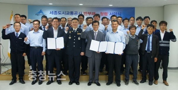 세종특별자치시(시장 이춘희) 세종도시교통공사(사장 고칠진)가 지난 28일 어진동 복합커뮤니티센터에서 반부패․청렴 서약식을 가졌다.