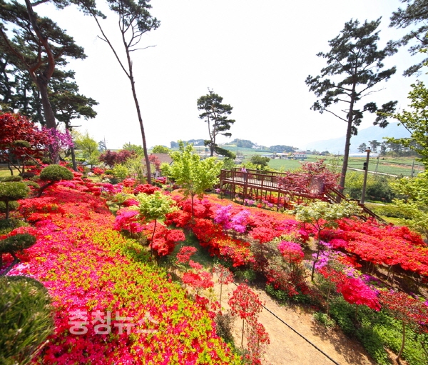 충남 서산시 인지면 모월2리에 위치한‘쉼이 있는 정원’에 활짝 핀 철쭉이 상춘객들의 눈길을 사로잡고 있다.