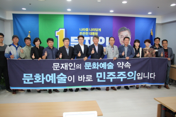 오후 2시 더불어민주당 충남도당을 찾은 한국예총 오태근 충남도연합회장과 현남주 천안시연합회장은 “인본주의 사고를 간직한 문재인 후보의 진정성을 신뢰한다. 통합과 포용의 리더십과 새로운 시대정신으로 창조국가를 만들어갈 적임자는 문 후보”라며 충청지역에서 227명의 문화예술인이 문재인 후보를 지지한다고 전했다.