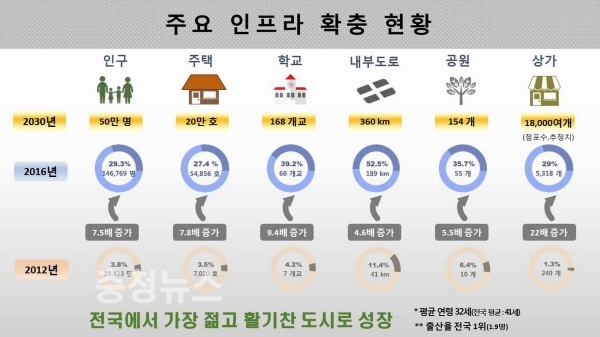 행복도시는 중앙행정기관의 성공적 이전을 통해 도시성장을 위한 기반을 마련하였으나, 도시가 한 단계 더 도약하기 위해서는 인구유입과 일자리 창출을 위한 자족기능 확충이 중요하다.